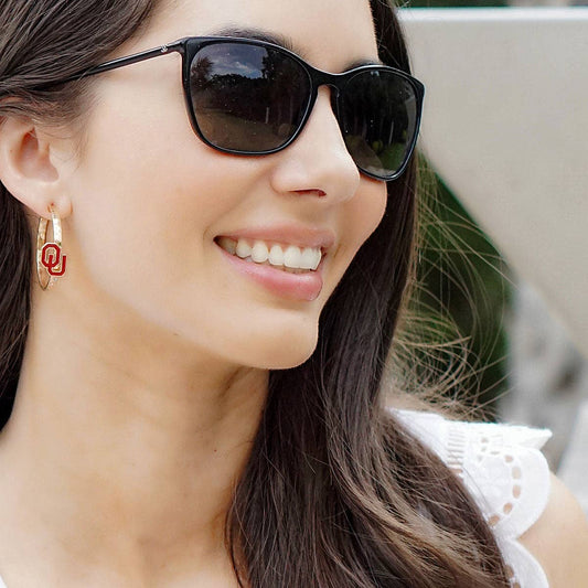 Canvas Style - Oklahoma Sooners Enamel Logo Hoop Earrings in Crimson