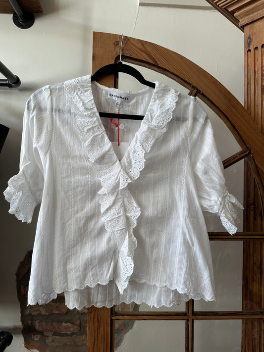 RAISONNEL - V-Neck Ruffle Blouse -RT1017