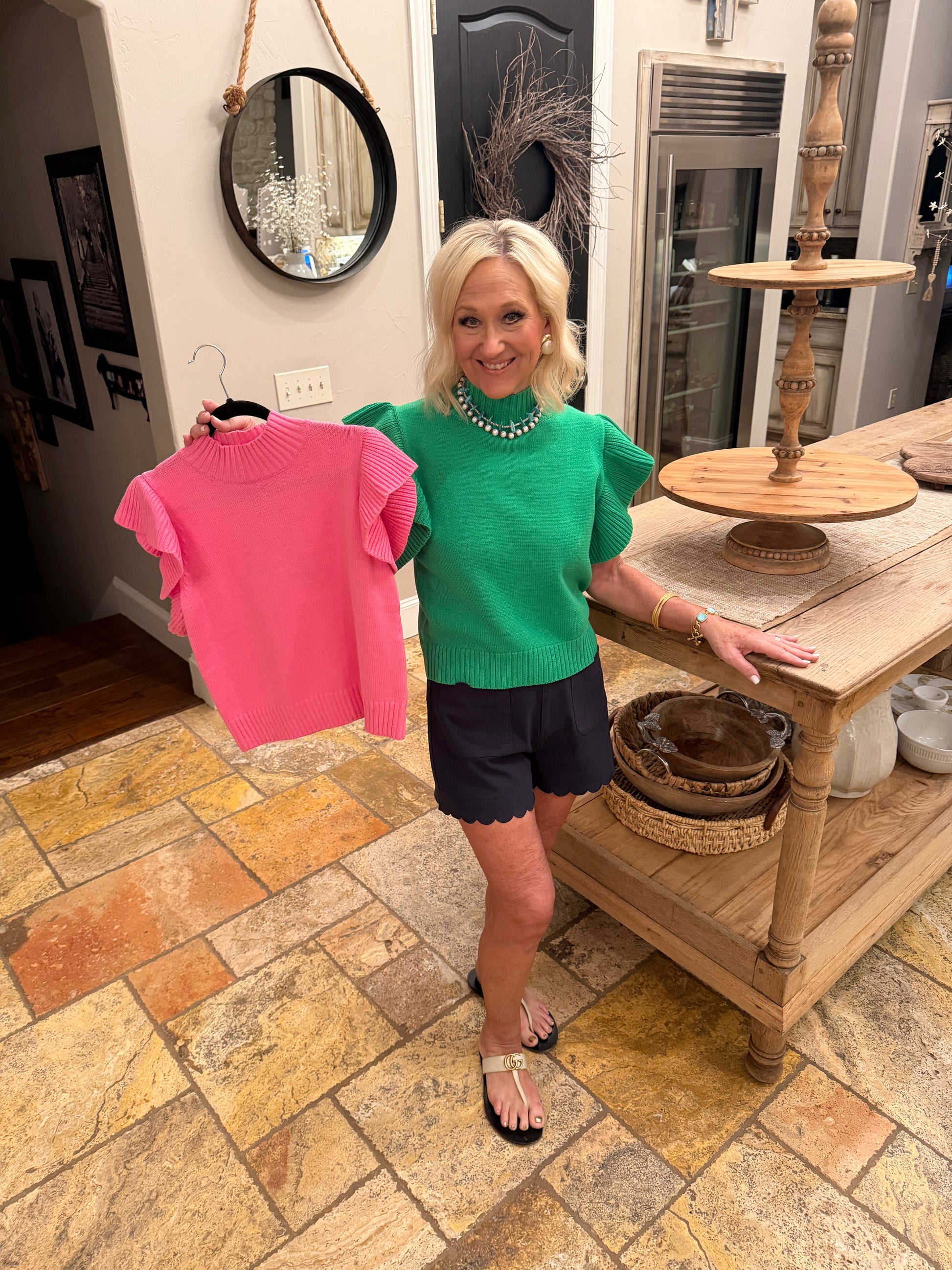 # All Frills Top Light Pink Embrace effortless elegance with this light pink top, designed for those who appreciate refined details. The cascading frills add movement and dimension, creating a polished silhouette perfect for spring gatherings and everyday sophistication. Crafted with attention to quality, this piece transitions seamlessly from casual outings to more curated occasions. A versatile wardrobe essential that celebrates understated luxury.