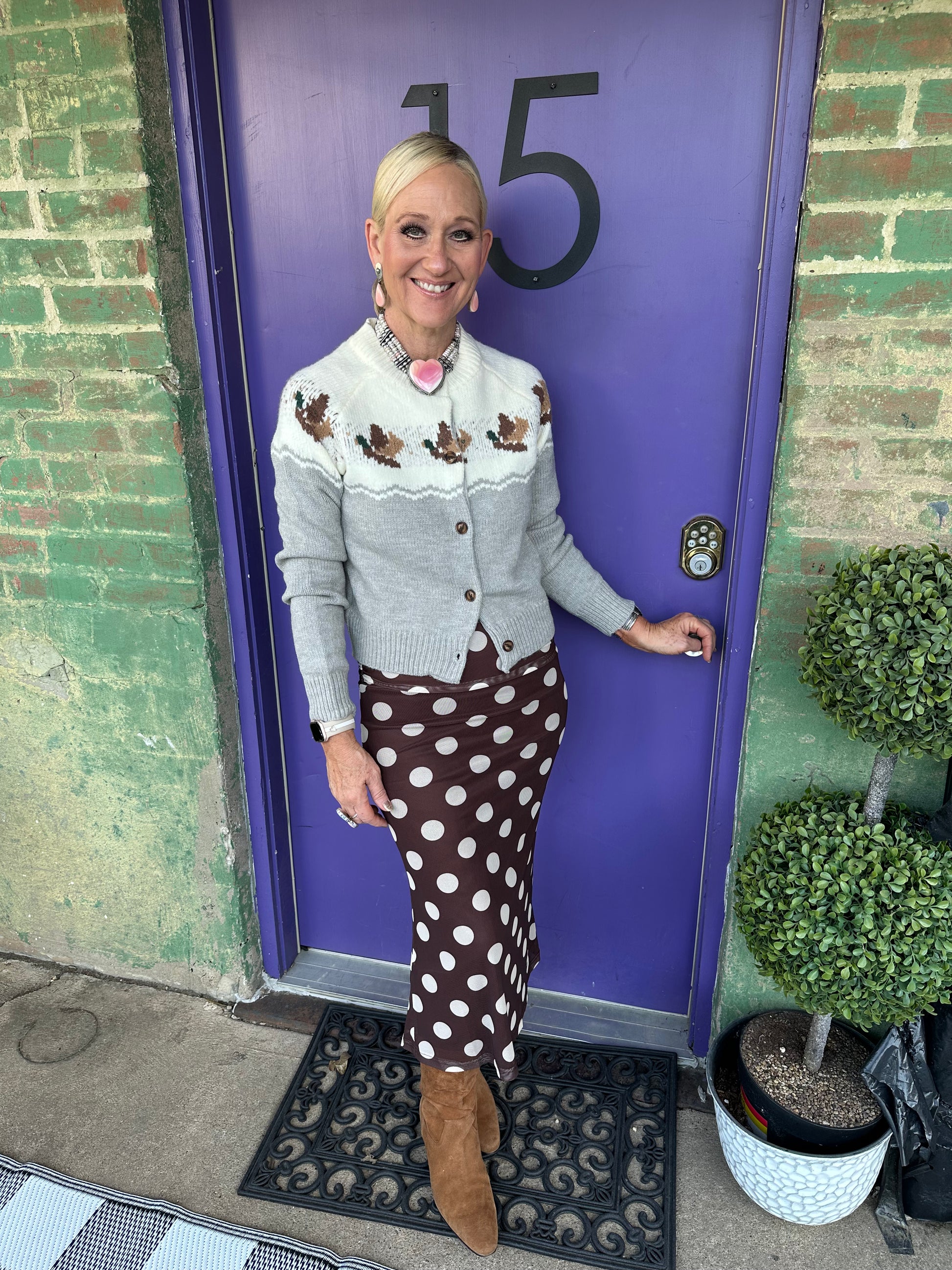 Spread your wings with this charming Flying Ducks cardigan! Featuring adorable duck motifs that bring whimsy to your wardrobe, this playful piece is perfect for layering with style. The cozy knit construction keeps you comfortable while the cute design adds personality to any outfit. Whether you're heading out for a casual day or want to add a touch of fun to your look, this cardigan is your new go-to favorite. Quack-tastic style that makes you smile!