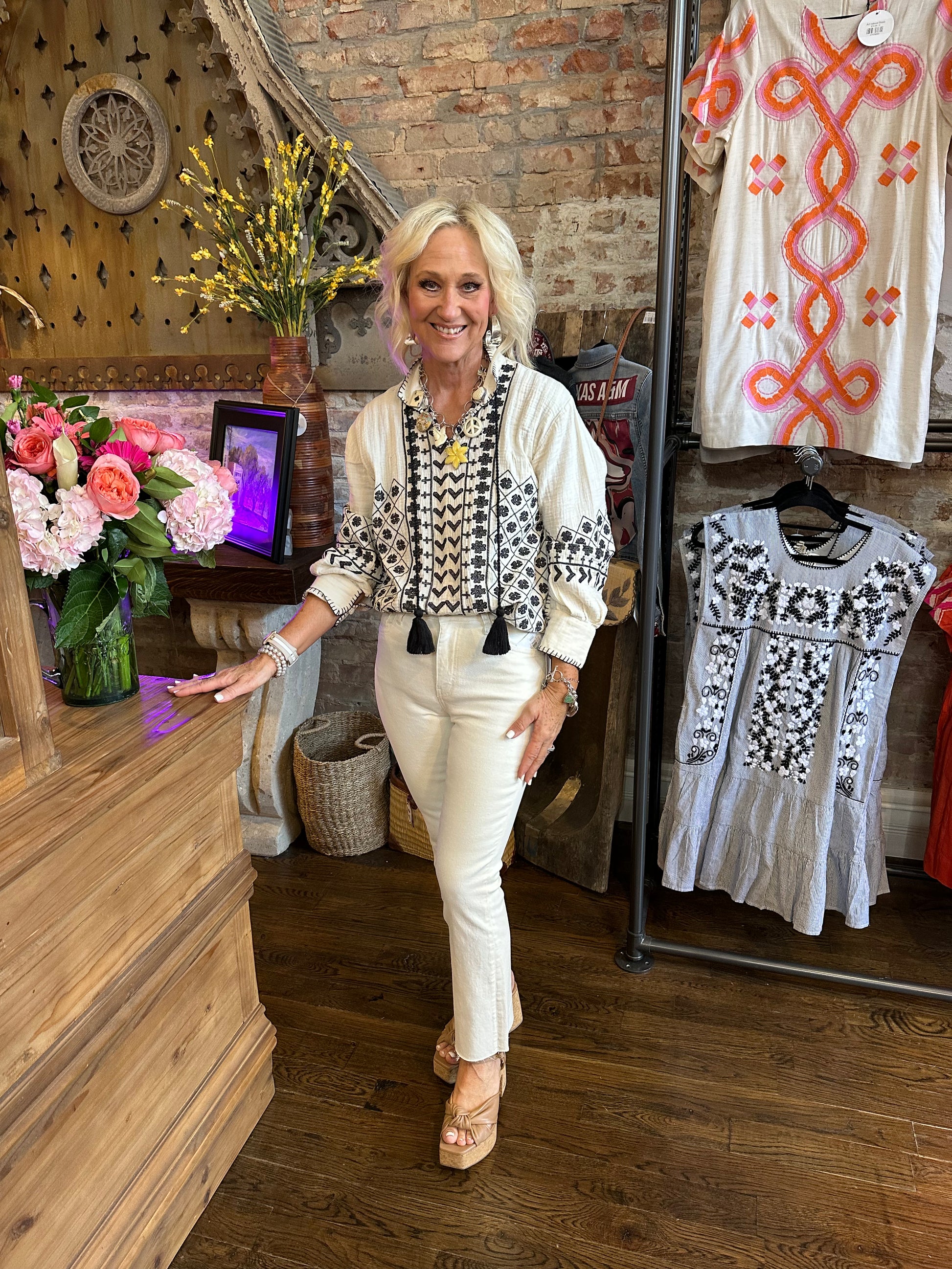 Add a touch of charm to your wardrobe with the Ivy Jane Tic Tac Heart Top in classic black and white. Featuring delicate embroidered heart details, this playful top brings a fun, flirty vibe to any outfit. Perfect for layering or wearing on its own, it’s a stylish way to show off your sweet side with a modern twist.