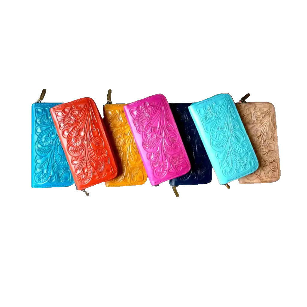 The Alex zip around closure wallet with 5" handmade tassel, is the perfect addition to any bag. Hand-tooled leather, the Alex, features 16 card holding spots, zipper coin pocket, and 2 compartments for stashing receipts and cash.