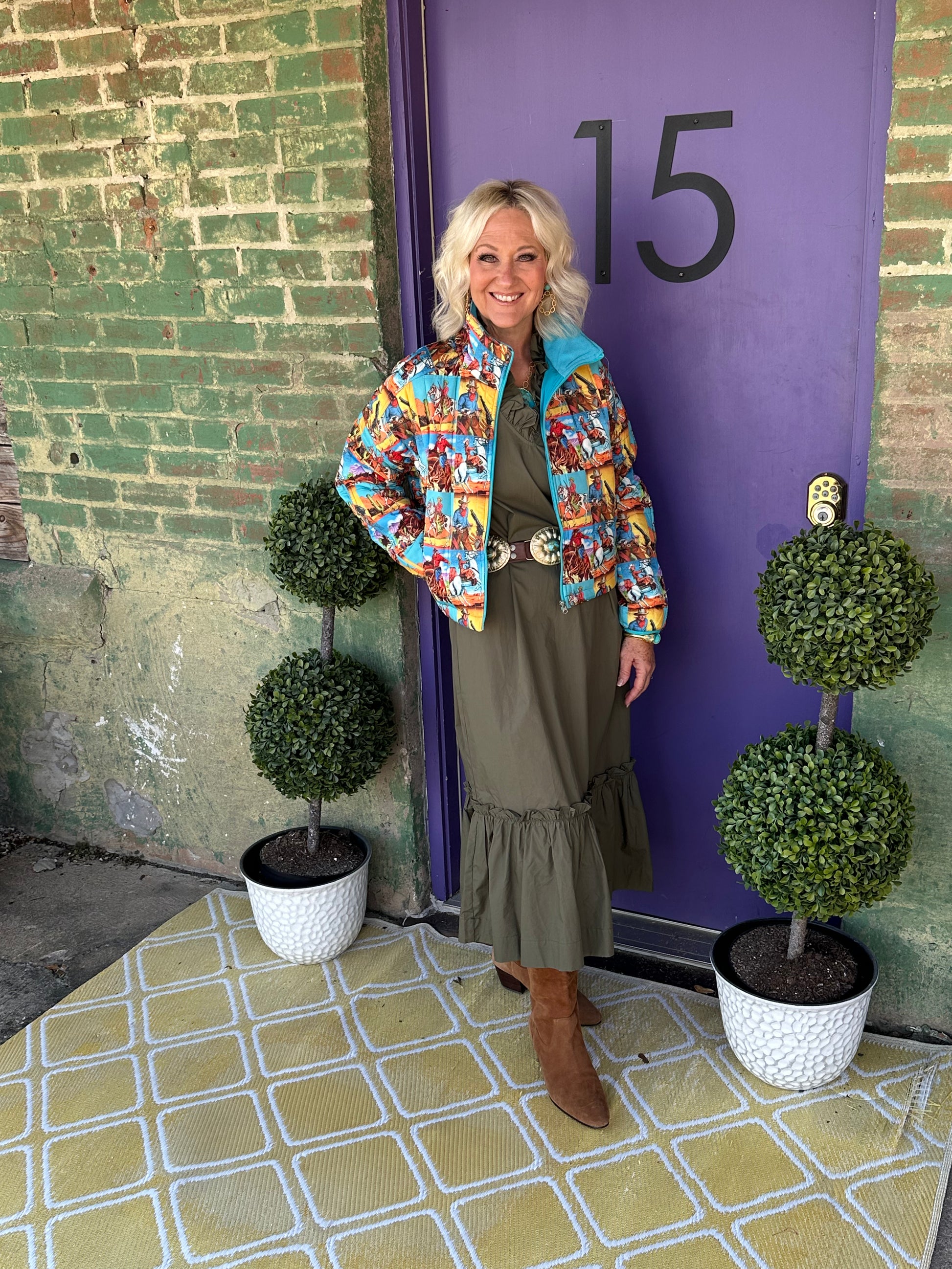 Stay cozy and stylish with the Popart Cowboy Puffer Jacket! This playful jacket adds a fun, colorful twist to your cold-weather look, blending bold pop art designs with classic western flair. Perfect for chilly days when you want to stand out, it keeps you warm while showcasing your unique personality. Whether you're headed to a casual outing or just want to brighten your everyday wear, this jacket brings cute charm and comfort together effortlessly.