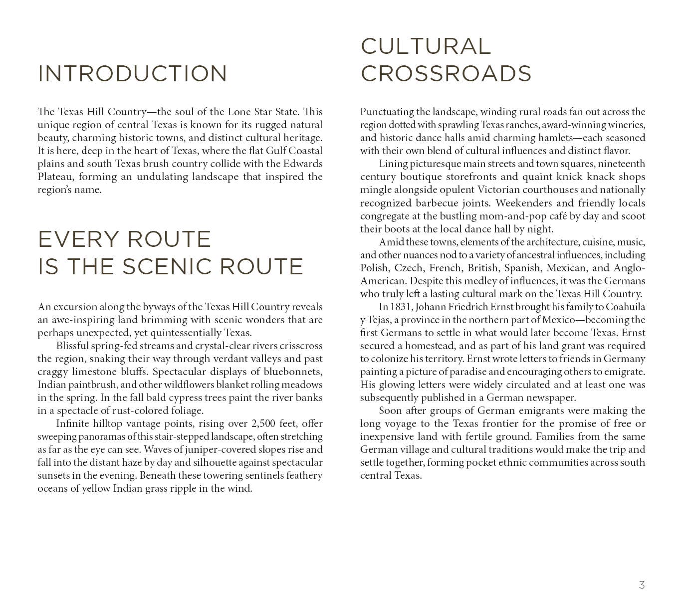 Experience the grandeur of the Texas Hill Country through stunning photography and narrative highlighting the natural beauty, scenic wonders, charming historic towns, and cultural heritage of Texas’ most celebrated region. Cradled by Austin to the east and San Antonio to the south, the Texas Hill Country is famous for its undulating landscape, where spring-fed streams carve wooded canyons, rugged limestone peaks rise to more than 2,500 feet, and country roads wind through rolling grasslands and wildflower meadows. Captured beautifully in 153 color photos, view this beautiful region through the eyes of Texas-native photographer and author Eric W. Pohl. Join him on an intimate visual journey, leaving behind the freeways and big cities to reveal out-of-the-way places and explore the true heart of Texas.